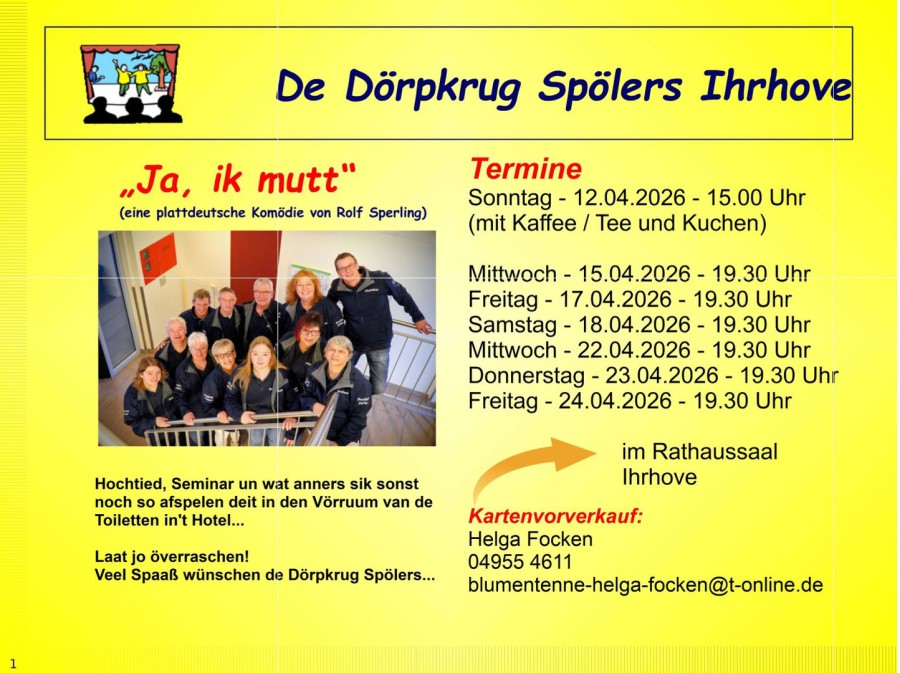 Aber so kommt es zu einem Missverständnis nach dem anderen und gefördert von den Trauzeugen (Burghard Wilms und Rebecca Schmidt), sowie zwei der Seminarteilnehmer (Heino Plenter und Dieter Frerichs), nimmt das Chaos im Vorraum der Hoteltoiletten seinen Lauf.